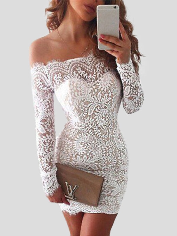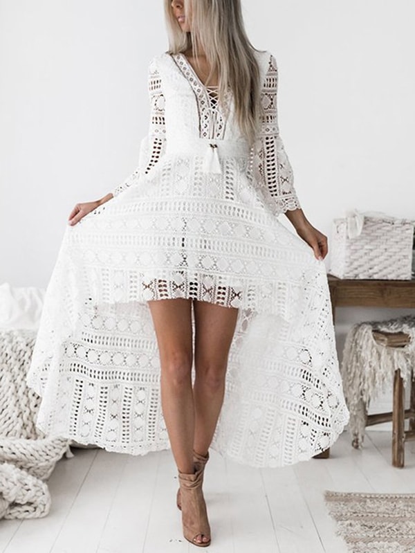 White Lowcout V-neck Criss-cross Back Delicate Sheer Lace Slip Mini Dress